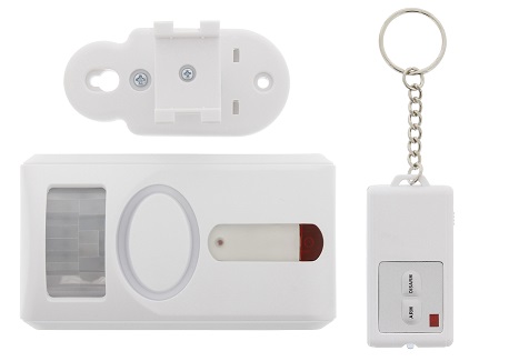 Monte la alarma en una pared para asegurar eficientemente una sala u otra área. Esta alarma de movimiento incluye la opción para cambiar entre timbre y sirena.