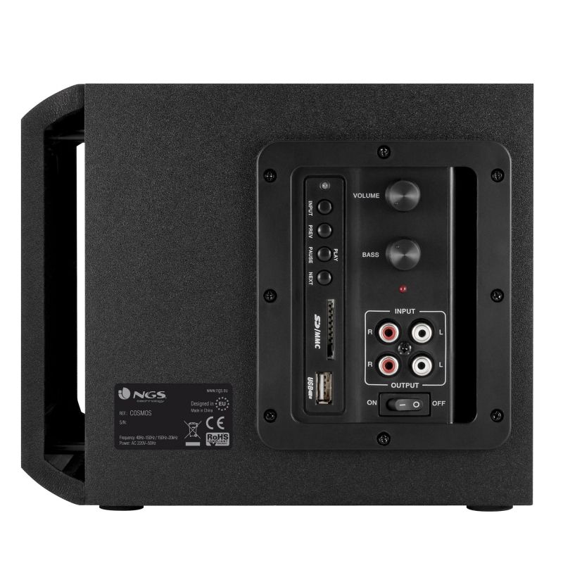 SISTEMA DE SONIDO 2.1 – RMS: 72 W -RANURA TARJETA SD- ENTRADA USB- CONTROL VOL/BAJOS