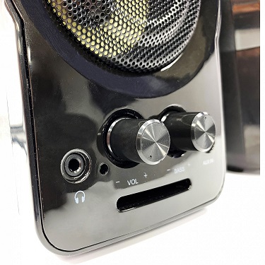 Los controles independientes en el panel frontal para el volumen y los bajos facilitan la reproducción de todo tipo de música, además incluyen una conexión para auriculares.