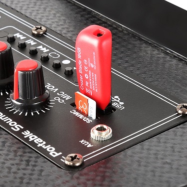 Con este sistema de sonido con tecnología Bluetooth puede disfrutar de su música favorita. Este sistema portátil compacto pero completo incluye todo lo que usted esperaría, como amplificador, entradas de audio, puerto USB, ranura para tarjeta micro-SD y micrófono inalámbrico VHF. Puede transmitir música directamente desde su dispositivo móvil o utilizar el reproductor de MP3 incorporado. Este sistema todo en uno funciona a través de la red o la batería interna recargable. Un sistema perfecto para músicos, animadores y organizadores de eventos y fiestas.