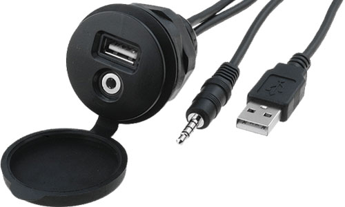 Base USB A y Jack 3,5mm para chasis con cable, tapa protectora