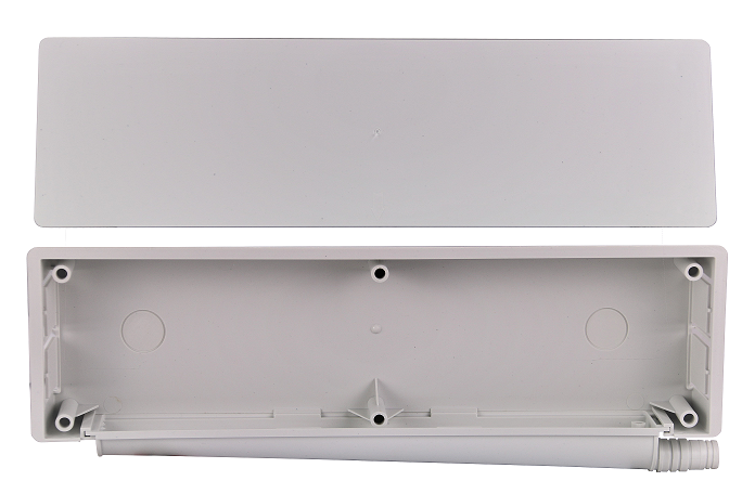 Caja de empotrar en la pared. 50mm de profundidad. Bandeja reversible + Salida horizontal. Medidas caja: 425*130*50mm. Medidas tapa: 430*110*50mm. A
