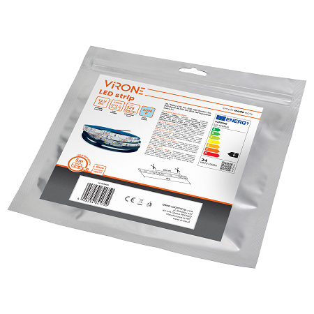 Esta iluminación LED es económica y, al mismo tiempo, ofrece una alta potencia lumínica. La tira cuenta con 60 LED/m y una temperatura de color fría de 6000 K. Se caracteriza por un amplio ángulo de dispersión de la luz y una tensión de alimentación segura de 12 V CC.