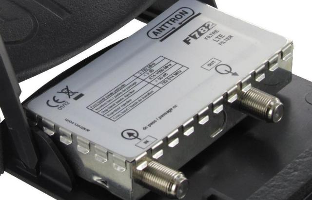 FILTRAR LTE ANTTRON F782 . Filtro LTE ANTTRON en caja para fijar al mástil . Pérdida de 3 dB de paso . Atenuación de 50 dB para los canales 61-69 .