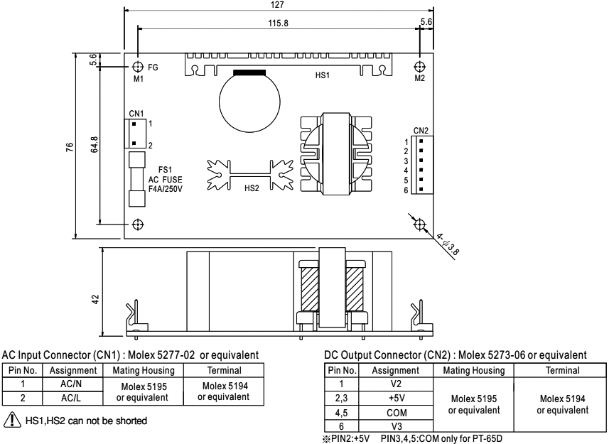 Fuentes de alimentación abiertas multisalida para instalación integrada MEAN WELL serie PT