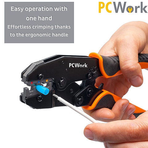 La crimpadora impresiona por su alta calidad de fabricación, que permite un manejo preciso y fiable. Su fuerza de compresión ajustable permite ajustar la fuerza de los alicates a sus necesidades. Como resultado, siempre obtendrá las mejores conexiones de crimpeado.
