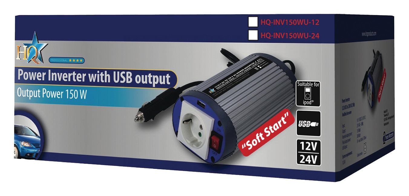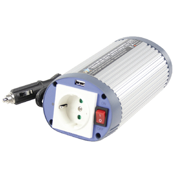 Inversor de 24 V para batería de automóvil o barco. Convierte la tension de 24 V de CC a 230 V CA. Con este dispositivo, los equipos de 230 V se pueden conectar en cualquier lugar. El inversor está equipado con un pico de potencia de salida muy alto. Posee un puerto USB a través del cual es posible utilizar dispositivos como reproductores MP3 y cámaras digitales.