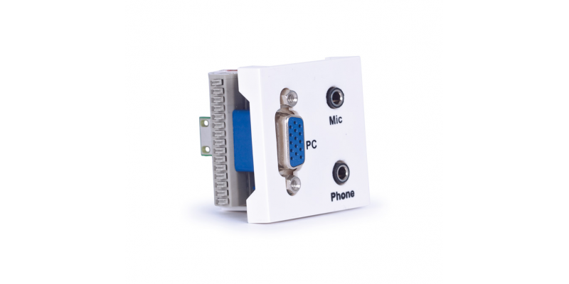 Panel de conexión VGA, mic y auriculares WP-52JVJ VGA, D15 hembra. Micro, jack 3’5 mm estéreo hembra. Auriculares, jack 3’5 mm estéreo hembra. 1 panel de conexión. Conexión rápida sin tornillos. COLOR Blanco (RAL 9003) MEDIDAS 45 x 45 x 45 mm fondo Añadir al presupuesto Categoría: Sistemas audiovisuales:paneles de conexión Productos relacionados Panel de conexión VGA, D15 WP-34V Panel de conexión HDMI WP-62H-02 Marco y chasis para caja universal WP-89MCH Panel de conexión VGA, D15 WP-51V