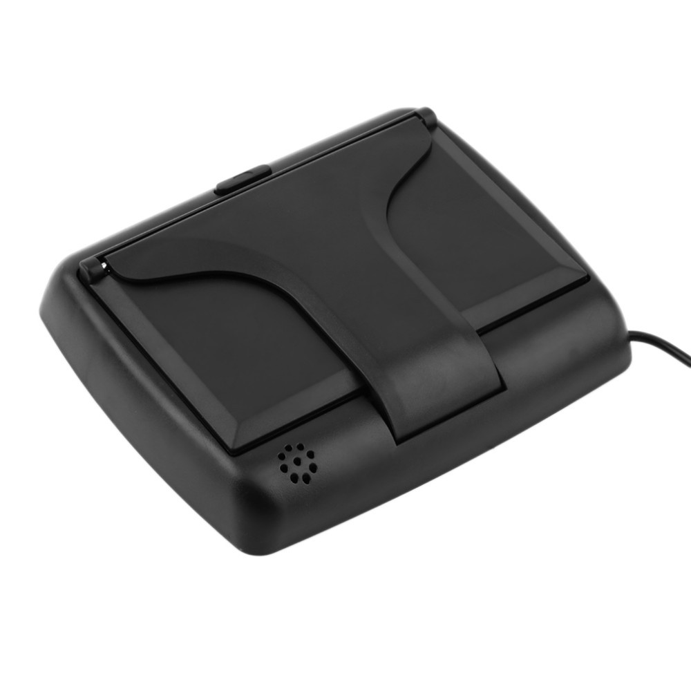 Pantalla TFT LCD 4,3″ con entrada de video por RCA. Válida para ayuda al aparcamiento o dispositivo de video. Tiene un botón para pulsarlo y que la pantalla se abra automáticamente. Después del uso la pantalla se puede plegar y queda escondida en el soporte.
