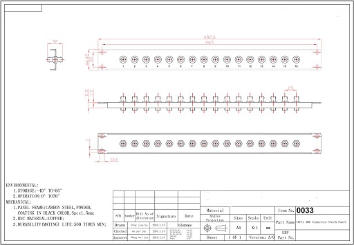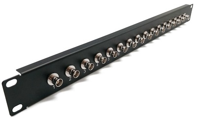 – Patch panel en formato rack 19″ de 16 puertos BNC.