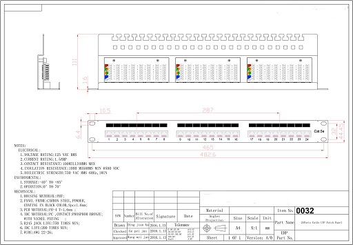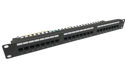 – Patch panel de 1U y de formato 19″ para ser instalado en un armario rack.