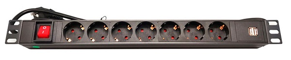 Regleta de 7 Schuko + 2 USB A 19″,1.8m, interruptor