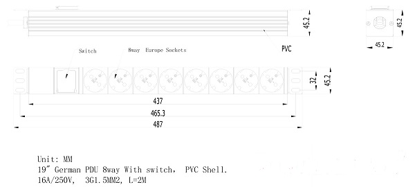 Regleta de 8 Schuko 19″,1.8m, interruptor