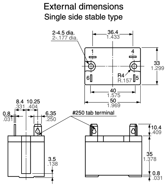 Capacidad de carga de contactos CC @R (a carga resistiva) 30A / 30V CC