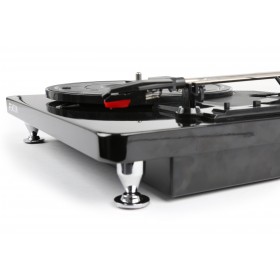 Reproduce tus vinilos con el giradiscos RP120 de diseño moderno y patas anti-shock. Este giradiscos de alta calidad esta realizado en madera con acabado en pintado negro piano. Las patas absorbentes de impacto aseguran una reproducción estable de cualquier tipo de música. Usa el puerto USB para convertir tus vinilos a MP3 via tu PC con el software suministrado.