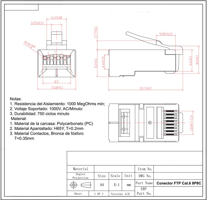 RJ-45 BLINDADO PARA CABLE RIGIDO Cat6 Conector FTP RJ45 Cat.6 8P8C, 50U» SIN GUIAS, el conector ya lleva las ranuras interiores, 4 arriba y 4 abajo, para poder introducir los cables correctamente sin la necesidad de utilizar guías. Añadir al presupuesto Categoría: Conectores RJ Descripción Descripción 2144127 Productos relacionados Conector hembra RJ45 PIN:8 Circuito term:8p8c IDC Cat 6 ADAPTADOR »T» 1 HEMBRA – 2 HEMBRAS RJ-45 BLINDADO PARA CABLE RIGIDO RJ-45 PARA CABLE RIGIDO Cat6