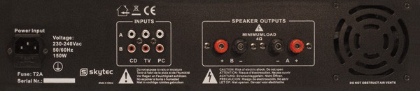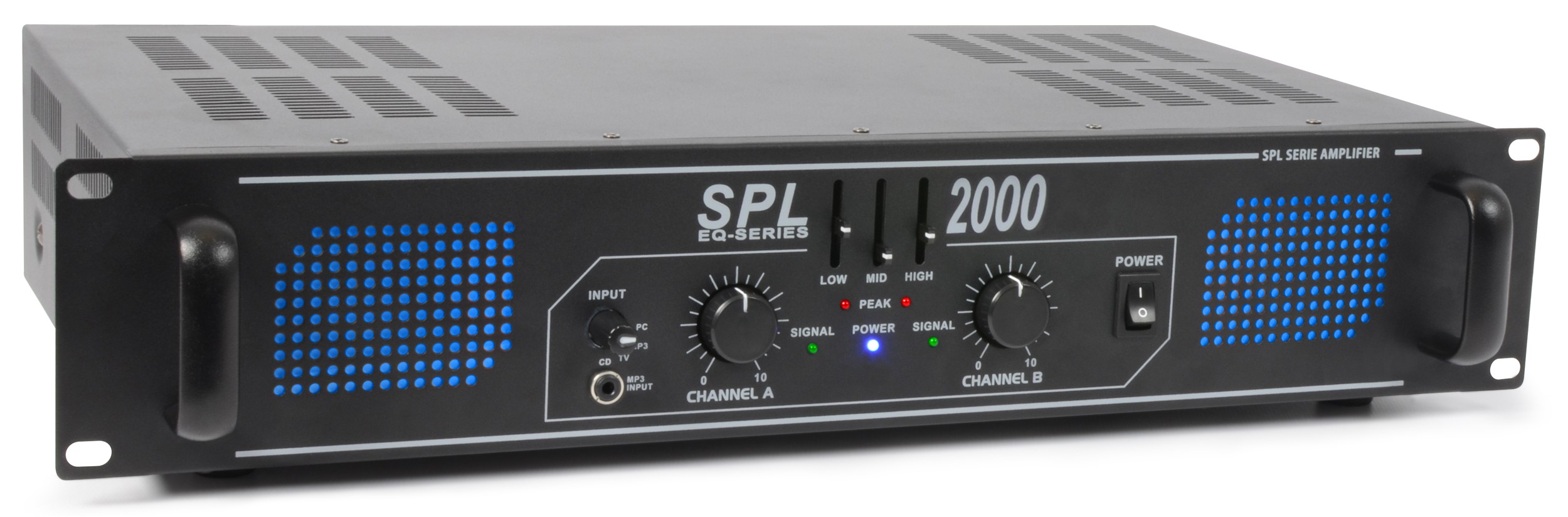 Etapa de potencia de 2x 1000W con ecualizador de 3 bandas ideal para cualquier instalacion DJ. Incluye varias entradas estereo por RCA para fuentes tipo television, CD- & DVD, Sintonizadores etc.. Hay una entrada frontal de jack 3.5mm para MP3 portatiles. Frontal moderno con LEDs azules.