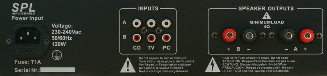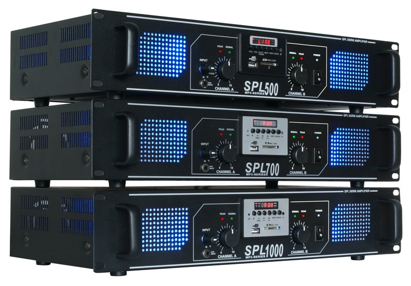 Etapa de potencia de 2x 350W con reproductor incorporado de MP3 via USB o SD Card. Panel frontal con acabado de LEDs azules. Varias entradas permiten conectar en el frontal un MP3 portatil por jack 3,5mm y por la parte trasera por RCA se pueden conectar tres fuentes tipo ordenador, television, DVD etc.