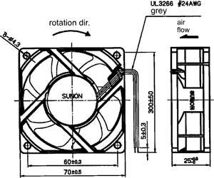Medidas del ventilador 70x70x25mm